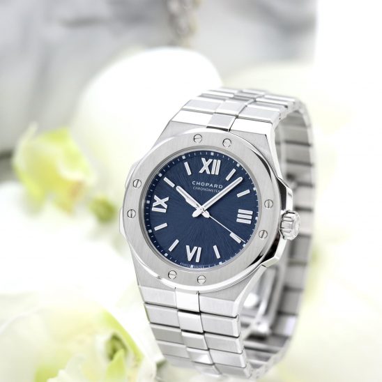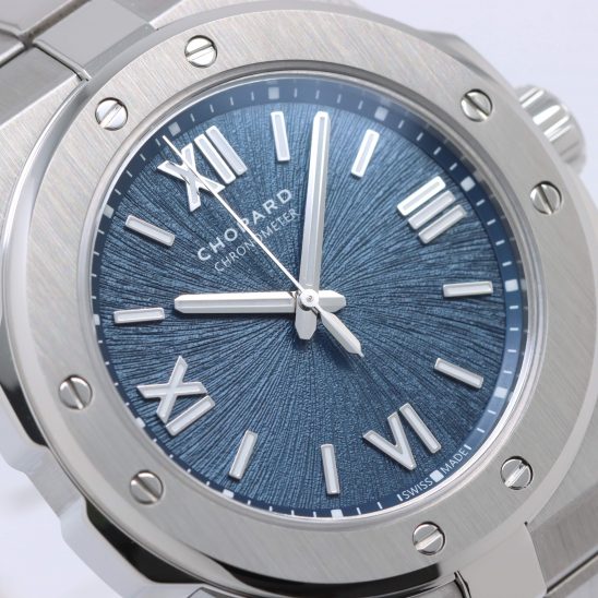 そしてブルーサフィールは、定番のブラック(ノワール)よりも抜け感があり、アルパインイーグルの文字盤とも美しくリンクする深みのあるネイビーブルー。